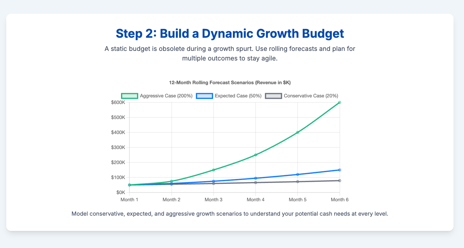 - The Expected Case: Your most realistic forecast (e.g., 50% growth). This should be your primary operational guide.