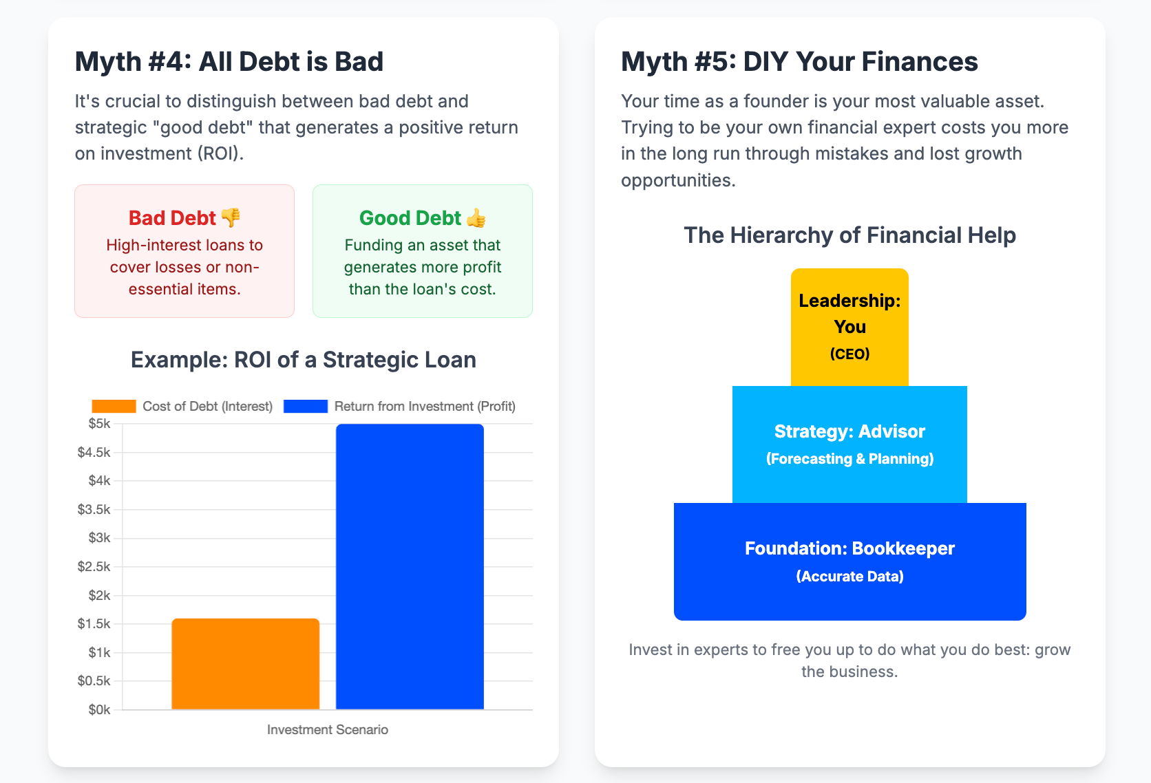 The Reality: This is one of the most common and costly business myths. While you absolutely should understand your numbers, trying to be your own financial expert often costs you more in the long run.