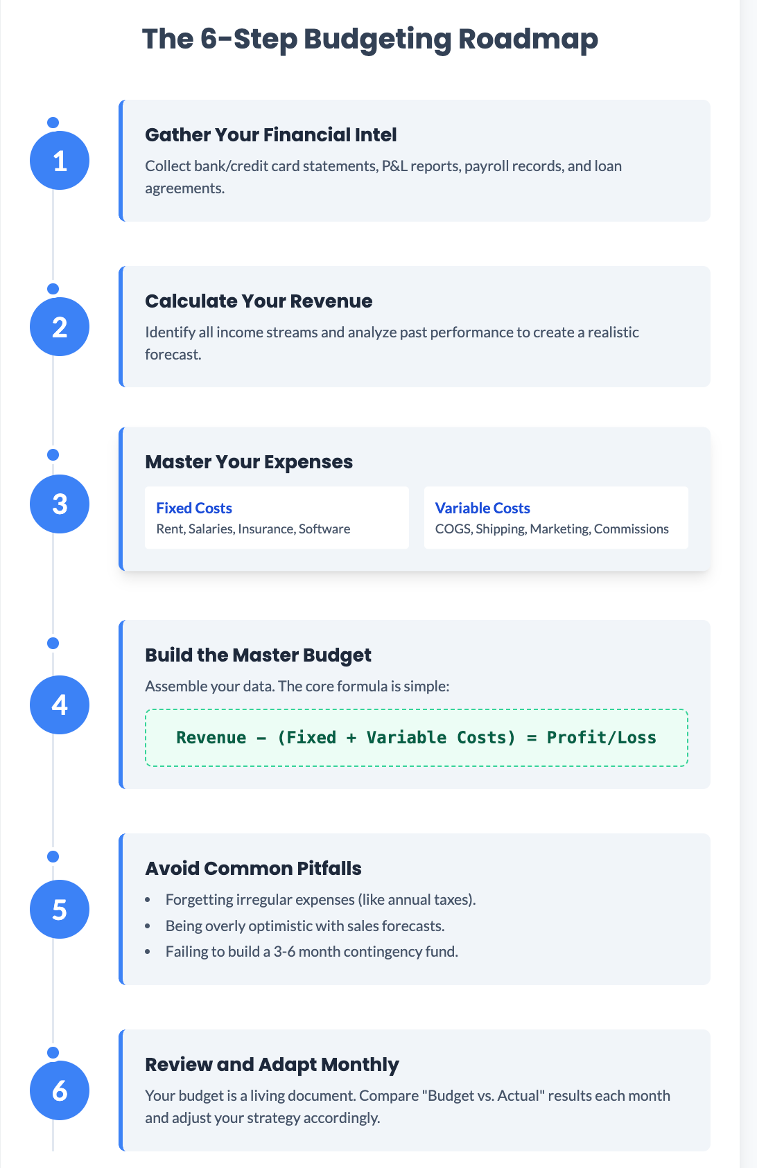 But what if we told you that a budget isn't a financial straitjacket, but rather your roadmap to freedom? A well-crafted budget is one of the most powerful, liberating tools in your arsenal. It provides the clarity to silence financial anxiety, the control to navigate uncertainty, and the confidence to turn your brilliant business vision into a profitable reality. This is your definitive, no-fluff guide to creating your first real business budget—a step-by-step journey to finally mastering your small business finances.